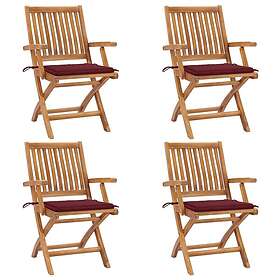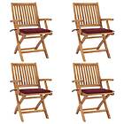 vidaXL Hopfällbara trädgårdsstolar med dynor 4 st massiv teak 3072732