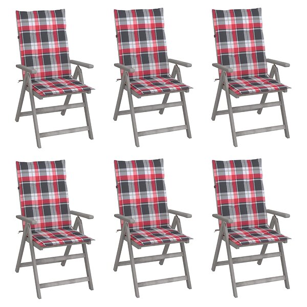 vidaXL Justerbara trädgårdsstolar med dynor 6 st massivt akaciaträ 3065330