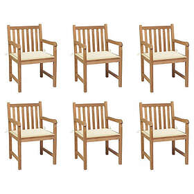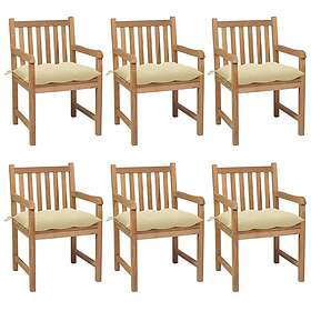 vidaXL Trädgårdsstolar 6 st med gräddvita dynor massiv teak 3073048