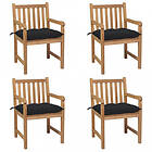 vidaXL Trädgårdsstolar med svarta dynor 4 st massiv teak 3073026