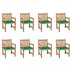 vidaXL Trädgårdsstolar 8 st med gröna dynor massiv teak 3073063