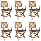 vidaXL Hopfällbara trädgårdsstolar med dynor 6 st massivt akaciaträ 3074940