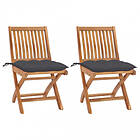 vidaXL Trädgårdsstolar 2 st med antracita dynor massiv teak 3062448