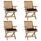 vidaXL Hopfällbara trädgårdsstolar med dynor 4 st massiv teak 3072746