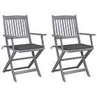 vidaXL Hopfällbara trädgårdsstolar med dynor 2 st massivt akaciaträ 3064482