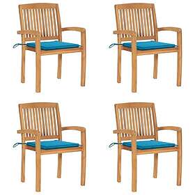 vidaXL Stapelbara trädgårdsstolar med dynor 4 st massiv teak 3073214