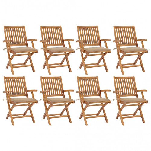 vidaXL Hopfällbara trädgårdsstolar med dynor 8 st massiv teak 3072780