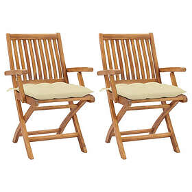 vidaXL Trädgårdsstolar med gräddvita dynor 2 st massiv teak 3062423