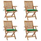vidaXL Hopfällbara trädgårdsstolar med dynor 4 st massiv teak 3072728