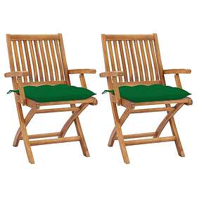 vidaXL Trädgårdsstolar 2 st med gröna dynor massiv teak 3062426