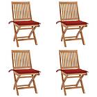 vidaXL Chaises de jardin pliantes avec coussins Set de 4 Teck massif 3072813