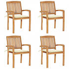 vidaXL Stapelbara trädgårdsstolar med dynor 4 st massiv teak 3073212