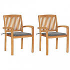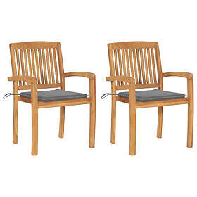 vidaXL Trädgårdsstolar 2 st med gråa dynor massivt teakträ 3063253