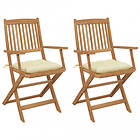 vidaXL Chaises de jardin pliantes avec coussins Ensemble de 2 Acacia massif 3064607