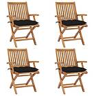vidaXL Hopfällbara trädgårdsstolar med dynor 4 st massiv teak 3072745