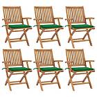 vidaXL Hopfällbara trädgårdsstolar med dynor 6 st massiv teak 3072755