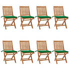 vidaXL Hopfällbara trädgårdsstolar med dynor 8 st massiv teak 3072866