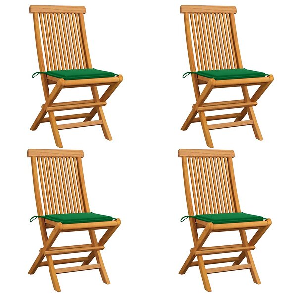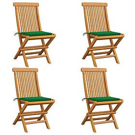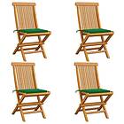 vidaXL Trädgårdsstolar med gröna dynor 4 st massivt teakträ 3062573
