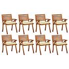 vidaXL Trädgårdsstolar med dynor 8 st massivt akaciaträ 3075218
