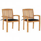 vidaXL Trädgårdsstolar 2 st med svarta dynor massivt teakträ 3063259