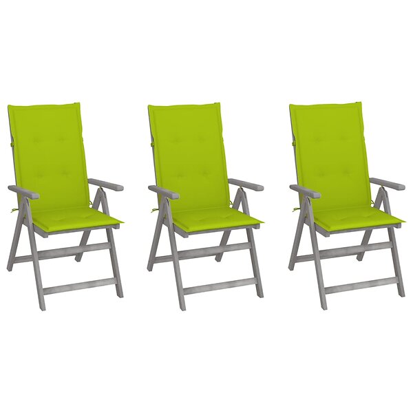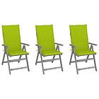 vidaXL Justerbara trädgårdsstolar med dynor 3 st massivt akaciaträ 3064739