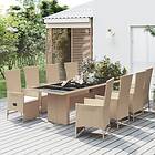 vidaXL Matgrupp för trädgården med dynor 9 delar beige konstrotting 3157580