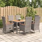 vidaXL Matgrupp för trädgården med dynor 7 delar grå konstrotting 3157551