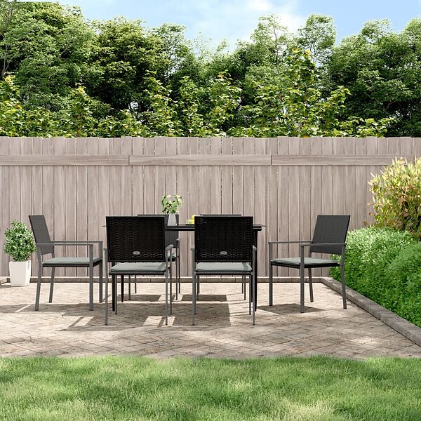 vidaXL Trädgårdsstolar 6 st med dynor svart 54x62.5x89 cm konstrotting 3187082