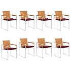 vidaXL Trädgårdsstolar med dynor 8 st massivt akaciaträ 3078533