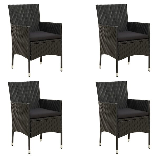vidaXL 316689 Chaises d'extérieur avec coussins Lot de 4 Polyrotin Noir
