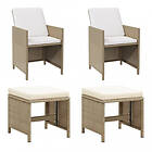 vidaXL Trädgårdsstolar med pallar 2 st konstrotting beige 316781
