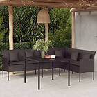 vidaXL Trädgårdssoffa med dynor L-formad svart konstrotting 362336