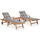 vidaXL Chaise longue 2 st med bord och dyna massiv teak 3073185