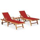 vidaXL Chaise longue 2 st med bord och dyna massiv teak 3073177
