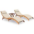 vidaXL bain de soleil 2 pcs avec table et coussins bois d'acacia massif
