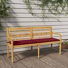 vidaXL Bataviabench med vinröd dyna 150 cm massiv teak 3100835