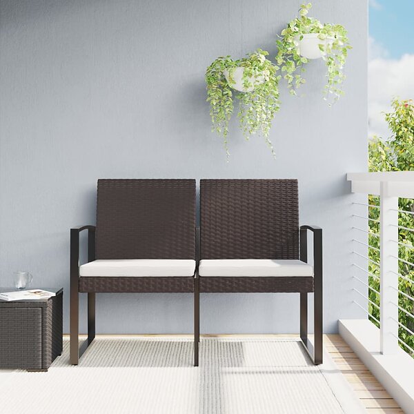 vidaXL Trädgårdsbench 2-sits med dynor konstrotting brun 360210