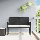 vidaXL Trädgårdsbench 2-sits med dynor konstrotting svart 360209