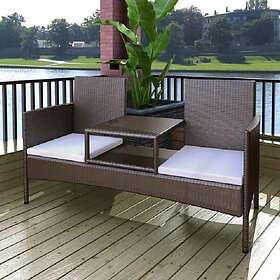vidaXL Trädgårdssoffa 2-sits med table konstrotting brun 42469