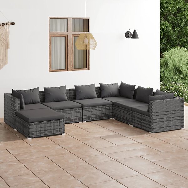 vidaXL Loungegrupp för trädgården med dynor 7 delar konstrotting grå 3101837