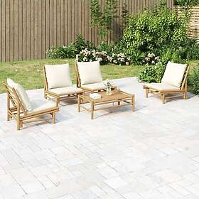 vidaXL Loungegrupp 5 delar gräddvita dynor bambu 3156487