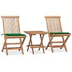 vidaXL Hopfällbar matgrupp med dyna för trädgården 3 delar massiv teak 3063203
