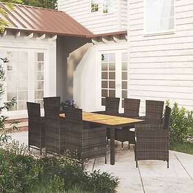 vidaXL Matgrupp för trädgården med dynor 9 delar konstrotting svart 3094838