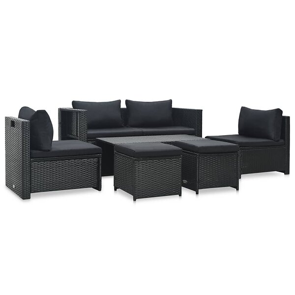 vidaXL Loungegrupp för trädgården med dynor 6 delar konstrotting svart 47809