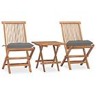 vidaXL Hopfällbar matgrupp med dyna för trädgården 3 delar massiv teak 3063214