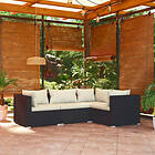 vidaXL Loungegrupp för trädgården med dynor 4 delar konstrotting svart 3101671