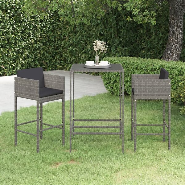 vidaXL Salon de jardin 3 pièces avec coussins Gris Rotin 3094788