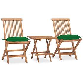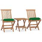 vidaXL Hopfällbar matgrupp med dyna för trädgården 3 delar massiv teak 3063218