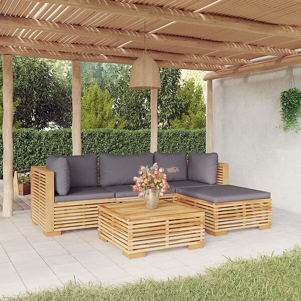 vidaXL Loungegrupp för trädgården med dynor 5 delar massiv teak 3100914