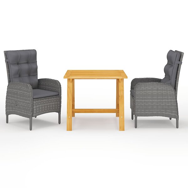 vidaXL Matgrupp för trädgården 3 delar grå 3068689